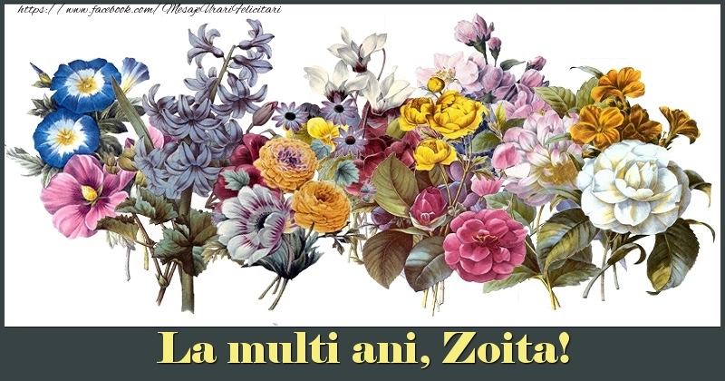 Această felicitare cu fundal cu diverse flori din colecția noastră de felicitari de la multi ani cu numele Zoita are o notă de originalitate și îți oferă ocazia să faci o persoană să se simtă specială datorită faptului că acolo este numele ei. Felicitarea se poate descărca gratuit sau se poate trimite prin Whatsapp, Facebook, Twitter, Pinterest. Imagine de la mulți ani cu fundal cu diverse flori cu dimensiunile 800px x 420px și cu textul La multi ani, Zoita!.
