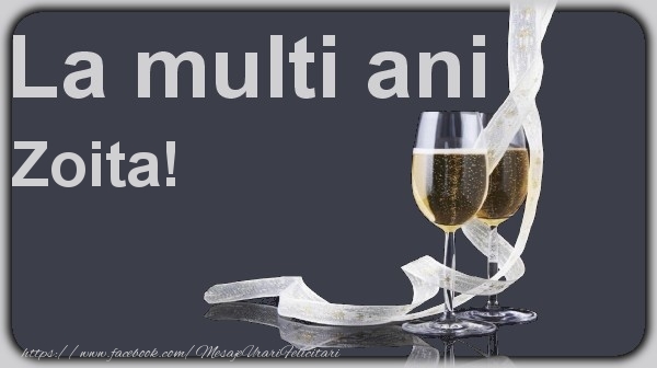 La multi ani Zoita! | Felicitare cu pahare de șampanie pe fundal gri | Felicitari de la multi ani