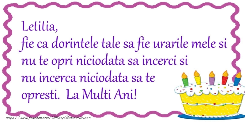 Letitia, fie ca dorintele tale sa fie urarile mele si nu te opri niciodata sa incerci si nu incerca niciodata sa te opresti. La Multi Ani!