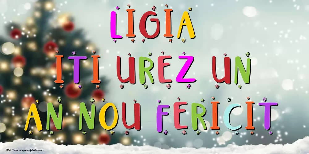 Descoperă cum numele Ligia devine sursa de lumină în acestă felicitare de Anul Nou. Fiecare literă aduce cu sine o strălucire distinctă, transformând această felicitare de Anul Nou cu brad în peisaj de iarnă într-o operă plină de căldură și optimism.