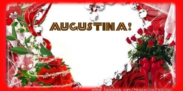 Această felicitare cu flori și inimioare pentru fete din colecția noastră de felicitari de dragoste cu numele Augustina are o notă de originalitate și îți oferă ocazia să faci o persoană să se simtă specială datorită faptului că acolo este numele ei. Felicitarea se poate descărca gratuit sau se poate trimite prin Whatsapp, Facebook, Twitter, Pinterest. Imagine de iubire cu flori și inimioare pentru fete cu dimensiunile 600px x 300px și cu textul Love Augustina!.