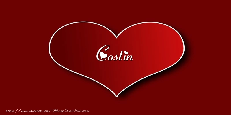 Această felicitare cu inimă roșu aprins din colecția noastră de felicitari de dragoste cu numele Costin are o notă de originalitate și îți oferă ocazia să faci o persoană să se simtă specială datorită faptului că acolo este numele ei. Felicitarea se poate descărca gratuit sau se poate trimite prin Whatsapp, Facebook, Twitter, Pinterest. Imagine de iubire cu inimă roșu aprins cu dimensiunile 800px x 400px și cu textul Love Costin.