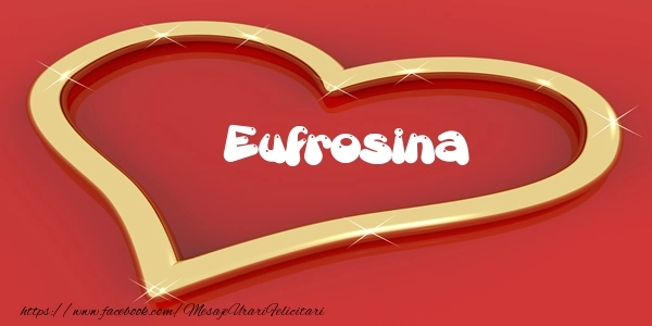 Felicitare cu inimioară pentru femei sau bărbați transmite autenticitatea și frumusețea dragostei, iar numele Eufrosina este elementul central al acestei experiențe romantice. Este un mod elegant de a exprima profunzimea sentimentelor tale.