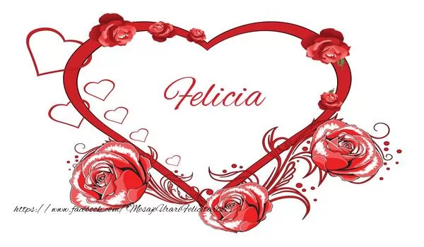 Această felicitare cu desen cu inimioară cu trandafiri din colecția noastră de felicitari de dragoste cu numele Felicia are o notă de originalitate și îți oferă ocazia să faci o persoană să se simtă specială datorită faptului că acolo este numele ei. Felicitarea se poate descărca gratuit sau se poate trimite prin Whatsapp, Facebook, Twitter, Pinterest. Imagine de iubire cu desen cu inimioară cu trandafiri cu dimensiunile 600px x 350px și cu textul Love Felicia.