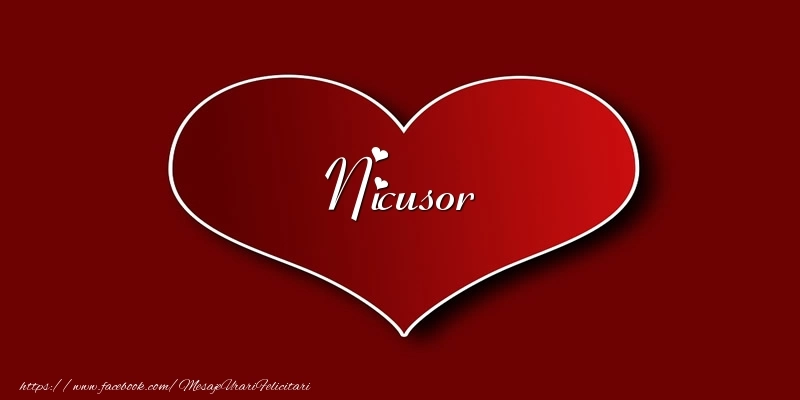 Această felicitare cu inimă roșu aprins din colecția noastră de felicitari de dragoste cu numele Nicusor are o notă de originalitate și îți oferă ocazia să faci o persoană să se simtă specială datorită faptului că acolo este numele ei. Felicitarea se poate descărca gratuit sau se poate trimite prin Whatsapp, Facebook, Twitter, Pinterest. Imagine de iubire cu inimă roșu aprins cu dimensiunile 800px x 400px și cu textul Love Nicusor.