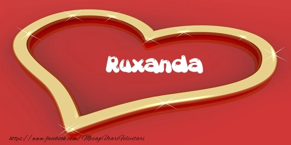 Această felicitare cu inimioară pentru femei sau bărbați din colecția noastră de felicitari de dragoste cu numele Ruxanda are o notă de originalitate și îți oferă ocazia să faci o persoană să se simtă specială datorită faptului că acolo este numele ei. Felicitarea se poate descărca gratuit sau se poate trimite prin Whatsapp, Facebook, Twitter, Pinterest. Imagine de iubire cu inimioară pentru femei sau bărbați cu dimensiunile 600px x 300px și cu textul Love Ruxanda.