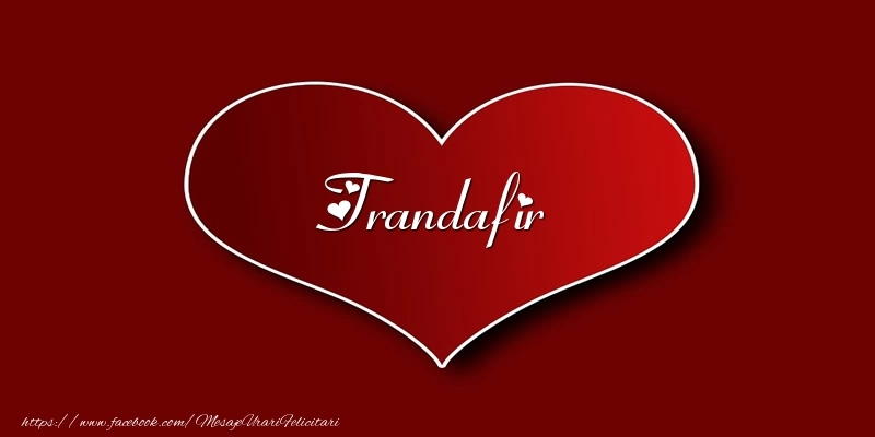 Această felicitare cu inimă roșu aprins din colecția noastră de felicitari de dragoste cu numele Trandafir are o notă de originalitate și îți oferă ocazia să faci o persoană să se simtă specială datorită faptului că acolo este numele ei. Felicitarea se poate descărca gratuit sau se poate trimite prin Whatsapp, Facebook, Twitter, Pinterest. Imagine de iubire cu inimă roșu aprins cu dimensiunile 800px x 400px și cu textul Love Trandafir.
