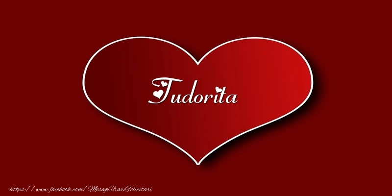 Această felicitare cu inimă roșu aprins din colecția noastră de felicitari de dragoste cu numele Tudorita are o notă de originalitate și îți oferă ocazia să faci o persoană să se simtă specială datorită faptului că acolo este numele ei. Felicitarea se poate descărca gratuit sau se poate trimite prin Whatsapp, Facebook, Twitter, Pinterest. Imagine de iubire cu inimă roșu aprins cu dimensiunile 800px x 400px și cu textul Love Tudorita.