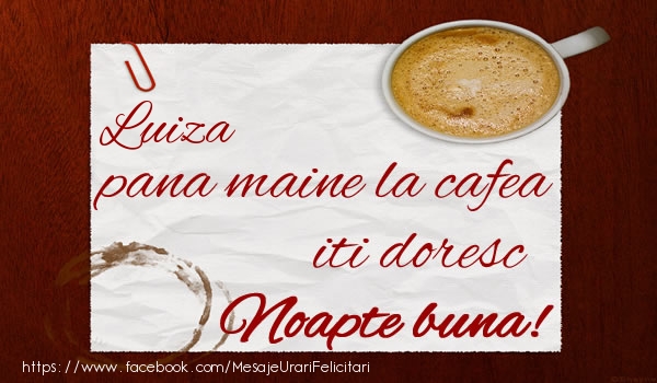 Luiza pana maine la cafea iti doresc Noapte buna! | Felicitare cu ceașcă de cafea | Felicitari de noapte buna