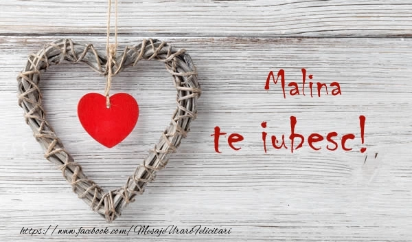 Această felicitare cu inimioară pe fundal vintage din lemn din colecția noastră de felicitari de dragoste cu numele Malina are o notă de originalitate și îți oferă ocazia să faci o persoană să se simtă specială datorită faptului că acolo este numele ei. Felicitarea se poate descărca gratuit sau se poate trimite prin Whatsapp, Facebook, Twitter, Pinterest. Imagine de iubire cu inimioară pe fundal vintage din lemn cu dimensiunile 600px x 352px și cu textul Malina, Te iubesc .
