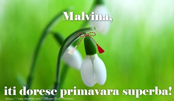 Transformă Mărțișorul într-o experiență personală! Această felicitare de 1 Martie cu un ghiocel pentru fete sau femei este gândită și creată cu atenție, iar numele Malvina se îmbină armonios în designul primăvăratic. O urare cu adevărat specială pentru o persoană unică.