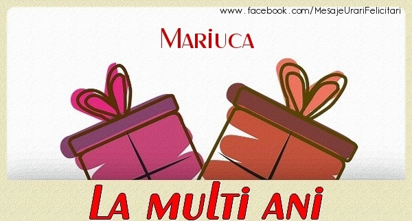 Cadourile funny pregătite cu grijă sunt garanția unor momente de amuzament și distracție. Fie că este vorba despre o jucărie amuzantă, un obiect neobișnuit sau orice altceva ce stârnește râsete, aceste cadouri sunt menite să aducă bucurie și voie bună în această zi specială. Această felicitare cu numele Mariuca este modul perfect de a aduce un zâmbet pe buzele destinatarului și de a transforma această zi într-o aventură plină de râsete și surprize. Felicitarea este disponibilă pentru download gratuit sau pentru partajare pe Whatsapp, Facebook, Twitter și Pinterest. Cu dimensiunile 600px x 322px, imaginea prezintă textul La multi ani Mariuca.