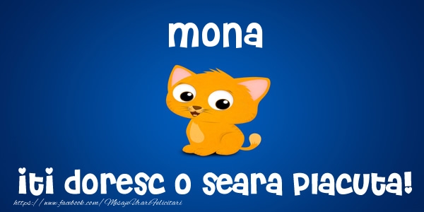 Mona iti doresc o seara placuta! | Felicitare cu o pisicuță haioasă | Felicitari de buna seara