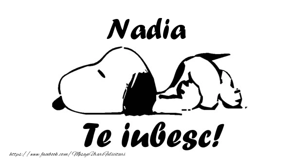 Această felicitare cu căteluș haios din colecția noastră de felicitari de dragoste cu numele Nadia are o notă de originalitate și îți oferă ocazia să faci o persoană să se simtă specială datorită faptului că acolo este numele ei. Felicitarea se poate descărca gratuit sau se poate trimite prin Whatsapp, Facebook, Twitter, Pinterest. Imagine de iubire cu căteluș haios cu dimensiunile 600px x 337px și cu textul Nadia Te iubesc!.