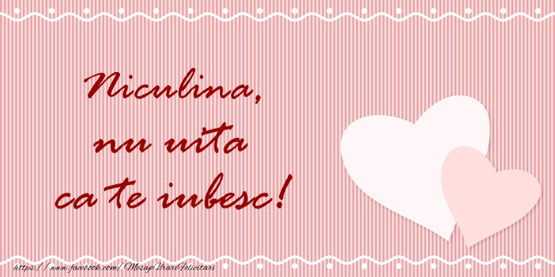 Niculina nu uita ca te iubesc! | Felicitare cu inimioare pe fundal roz | Felicitari de dragoste