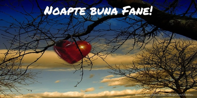 Această felicitare cu inimioară roșie in copac la apusul soarelui din colecția noastră de felicitari de noapte buna cu numele Fane are o notă de originalitate și îți oferă ocazia să faci o persoană să se simtă specială datorită faptului că acolo este numele ei. Felicitarea se poate descărca gratuit sau se poate trimite prin Whatsapp, Facebook, Twitter, Pinterest. Imagine de noapte bună cu inimioară roșie in copac la apusul soarelui cu dimensiunile 800px x 400px și cu textul Noapte buna Fane!.