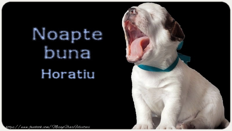 Ca un orășel magic al viselor, această felicitare cu câine somnuros pe fundal negru de noapte bună special creată pentru Horatiu te invită să explorezi lumea viselor. Fiecare lumină strălucitoare aduce cu sine promisiunea unei nopți pline de vise frumoase.