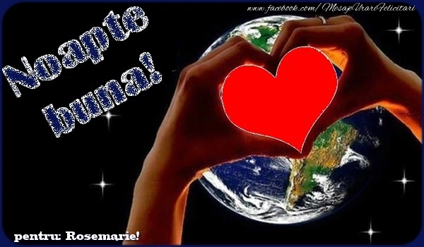 Noapte buna, pentru: Rosemarie! | Felicitare cu inimioară și glob pamântesc | Felicitari de noapte buna
