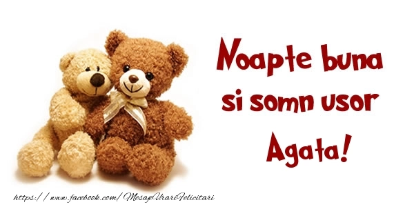 Noapte buna si Somn usor Agata! | Felicitare cu 2 ursuleți de pluș | Felicitari de noapte buna