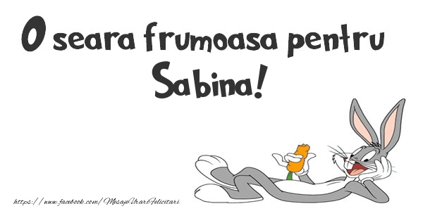 O seara frumoasa pentru Sabina! | Felicitare cu Bugs Bunny funny cu morcov | Felicitari de buna seara