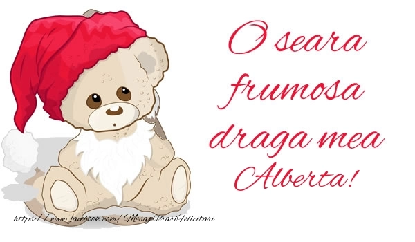 O seara frumosa draga mea Alberta! | Felicitare cu ursuleț cu șapcă roșie | Felicitari de buna seara