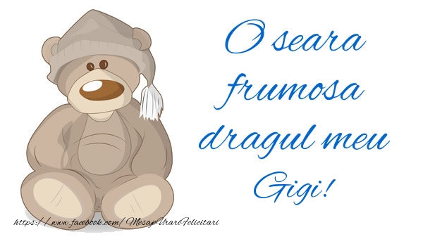 O seara frumosa dragul meu Gigi! | Felicitare cu ursuleț pregătit de somn | Felicitari de buna seara