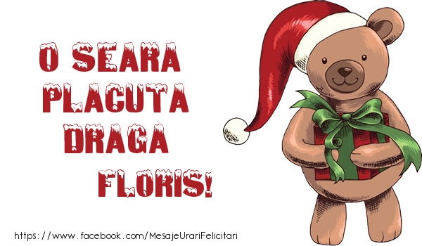 O seara placuta draga Floris! | Felicitare cu ursuleț cu șapca lui Mos Craciun și cu cadou în brațe | Felicitari de Craciun