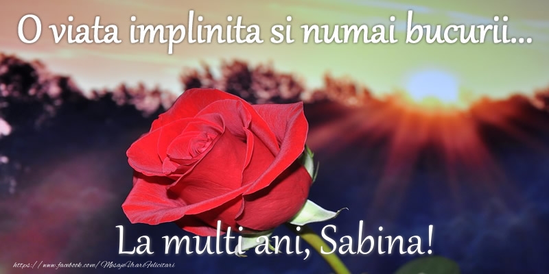O viata implinita si numai bucurii... La multi ani, Sabina! | Felicitare cu trandafir roșu și răsărit de soare pe fundal | Felicitari de zi de nastere