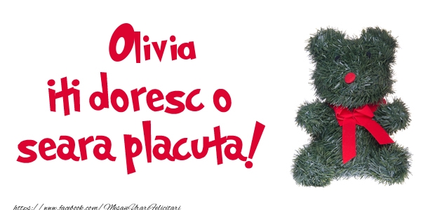 Olivia iti doresc  o seara placuta! | Felicitare cu ursuleț de pluș | Felicitari de buna seara