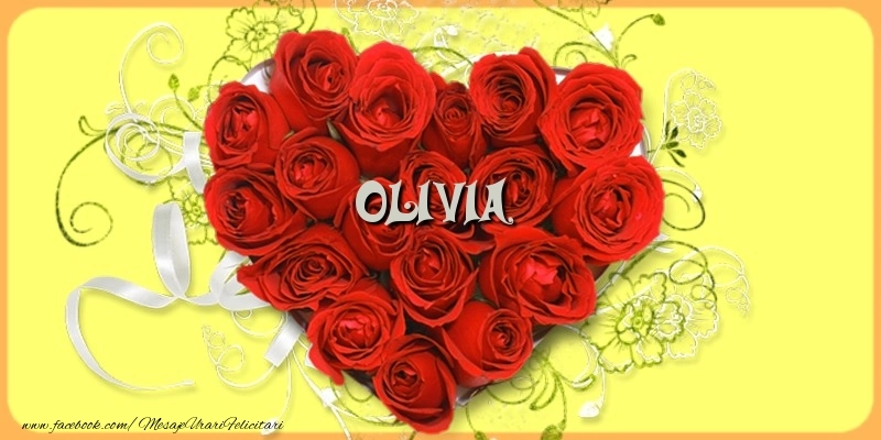 Felicitare cu inimioară din trandafiri transmite autenticitatea și frumusețea dragostei, iar numele Olivia este elementul central al acestei experiențe romantice. Este un mod elegant de a exprima profunzimea sentimentelor tale.