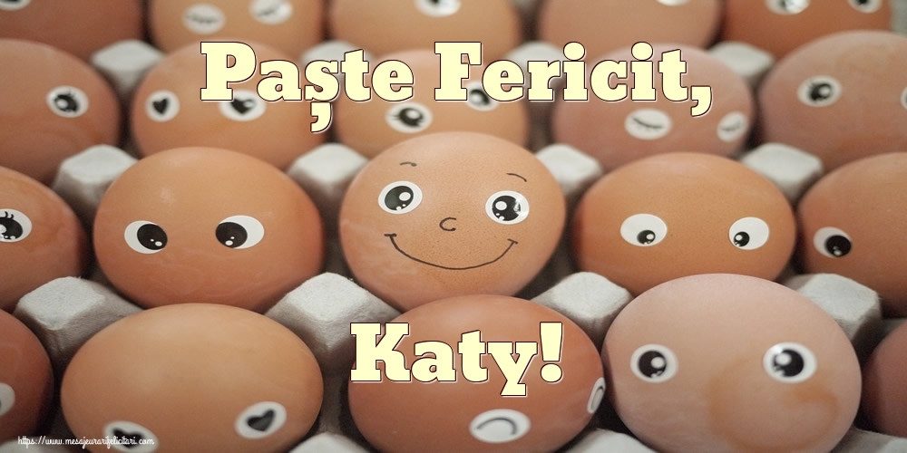 Paște Fericit, Katy! | Felicitare cu ouă zâmbărețe în cofrag | Felicitari de Paste