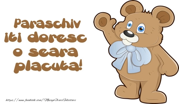 Paraschiv iti doresc  o seara placuta! | Felicitare cu ursuleț care salută | Felicitari de buna seara