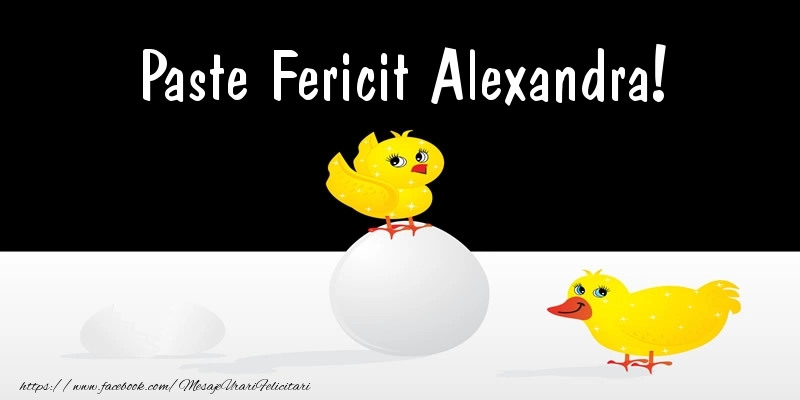 Felicitarea pentru Alexandra cu 2 puișori galbeni și ouă este un cadou unic și personal, creat special pentru Paște. Numele Alexandra devine inima acestui dar, aducând bucurie și căldură într-un mod special și intim.