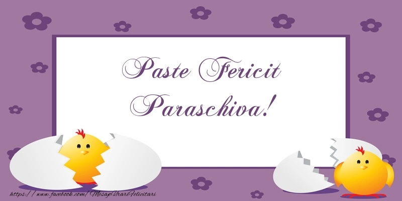 Felicitarea pentru Paraschiva cu puișori care ies din ouă este un cadou unic și personal, creat special pentru Paște. Numele Paraschiva devine inima acestui dar, aducând bucurie și căldură într-un mod special și intim.