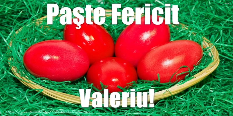 Felicitarea pentru Valeriu cu ouă roșii în coș în iarbă este un cadou unic și personal, creat special pentru Paște. Numele Valeriu devine inima acestui dar, aducând bucurie și căldură într-un mod special și intim.