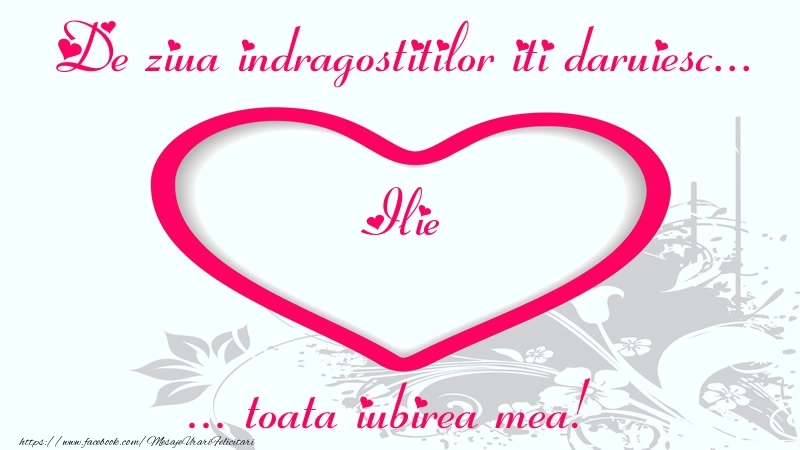 Pentru Ilie: De ziua indragostitilor iti daruiesc toata iubirea mea! | Felicitare cu inimă și scris cu inimioare | Felicitari de Valentine's day