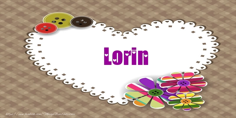 Felicitare cu inimioară cusută cu flori și nasturi transmite autenticitatea și frumusețea dragostei, iar numele Lorin este elementul central al acestei experiențe romantice. Este un mod elegant de a exprima profunzimea sentimentelor tale.