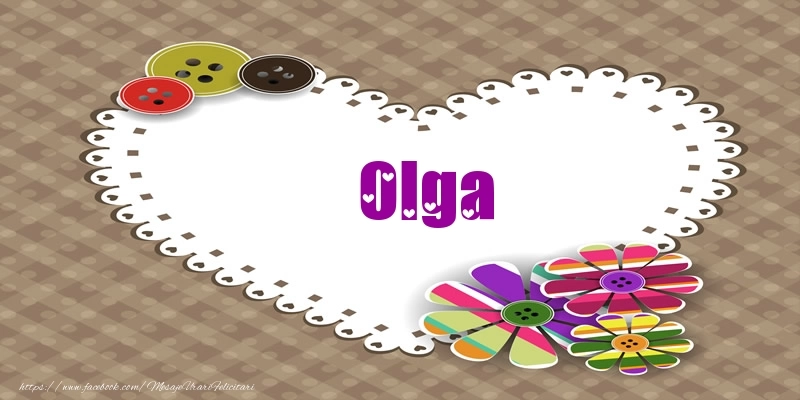 Felicitare cu inimioară cusută cu flori și nasturi transmite autenticitatea și frumusețea dragostei, iar numele Olga este elementul central al acestei experiențe romantice. Este un mod elegant de a exprima profunzimea sentimentelor tale.