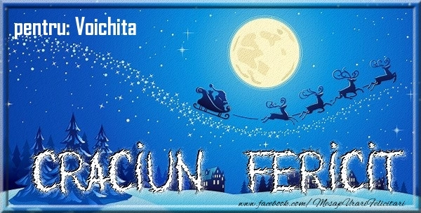 Felicitarea cu Mos Craciun cu sania într-un peisaj de iarnă pentru Voichita spune o poveste de iarnă unică, iar numele Voichita este eroul principal. Este o călătorie captivantă în lumea minunată a Crăciunului, personalizată pentru a aduce bucurie și emoție.