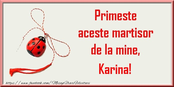 Primeste aceste martisor de la mine, Karina | Felicitare cu mărtișor cu buburuză | Felicitari de Martisor