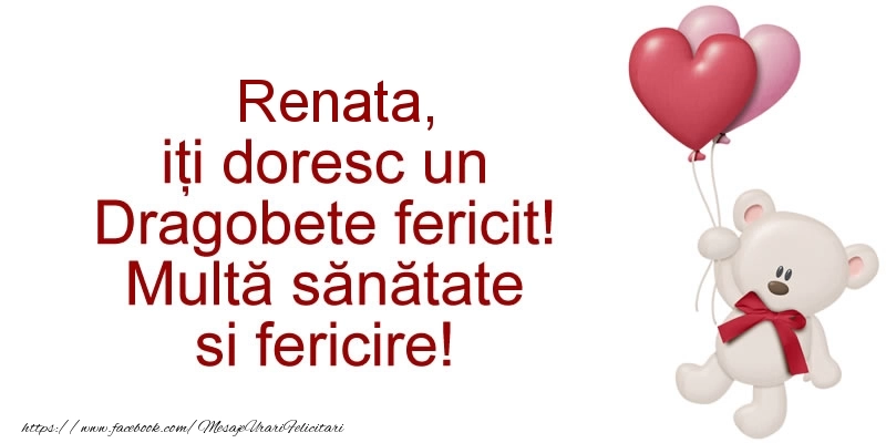 Felicitarea cu ursuleț cu inimioare pentru fete pentru Renata este o poveste personală de Dragobete, personalizată cu numele destinatarului. Cu fiecare cuvânt ales cu grijă, felicitarea reflectă spiritul și tradițiile Dragobetelui.