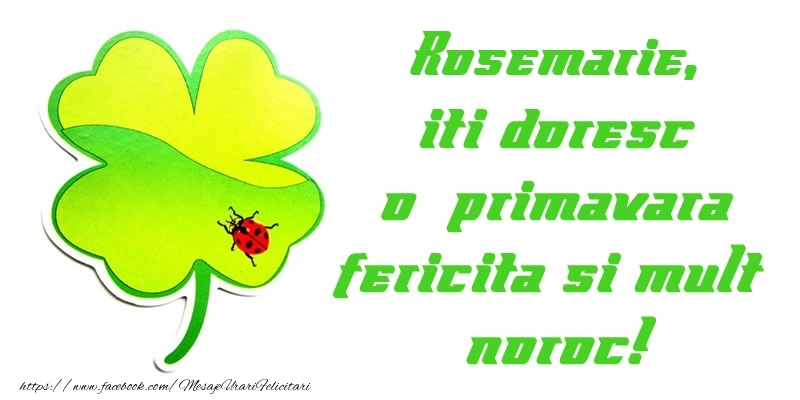 Rosemarie iti doresc o primavara fericita si mult noroc! | Felicitare cu trifoi cu 4 foi cu o buburuză | Felicitari de Martisor