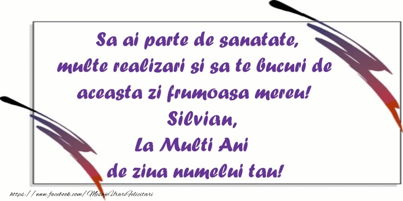 Sa ai parte de sanatate, multe realizari si sa te bucuri de aceasta zi frumoasa mereu! Silvian, La Multi Ani de ziua numelui tau! | Felicitare cu mesaj pe fundal alb | Felicitari de Ziua Numelui