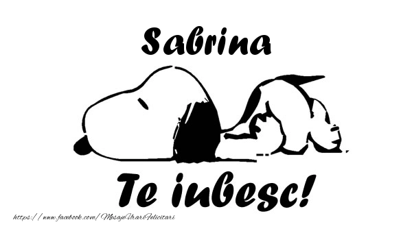 Această felicitare cu căteluș haios din colecția noastră de felicitari de dragoste cu numele Sabrina are o notă de originalitate și îți oferă ocazia să faci o persoană să se simtă specială datorită faptului că acolo este numele ei. Felicitarea se poate descărca gratuit sau se poate trimite prin Whatsapp, Facebook, Twitter, Pinterest. Imagine de iubire cu căteluș haios cu dimensiunile 600px x 337px și cu textul Sabrina Te iubesc!.