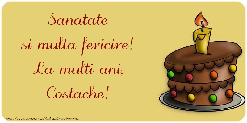 Felicitarea cu prăjiturică de ciocolată cu lumânare este ca o explozie de bucurie și culoare, iar numele Costache este adăugat cu gingășie pentru a personaliza această experiență de sărbătoare. Este modul tău de a spune la mulți ani într-un mod unic și special!
