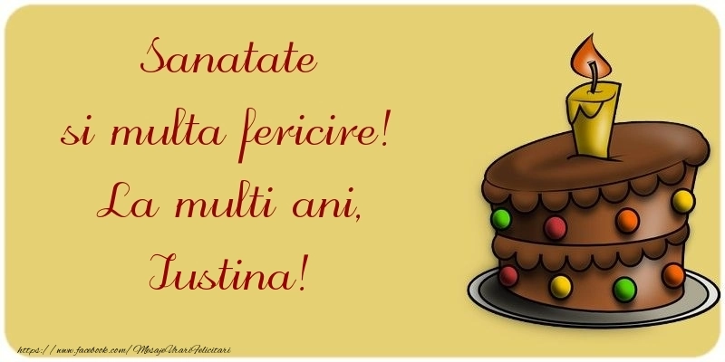 Felicitarea cu prăjiturică de ciocolată cu lumânare este ca o explozie de bucurie și culoare, iar numele Iustina este adăugat cu gingășie pentru a personaliza această experiență de sărbătoare. Este modul tău de a spune la mulți ani într-un mod unic și special!