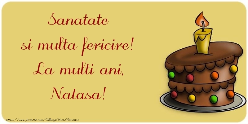 Felicitarea cu prăjiturică de ciocolată cu lumânare este ca o explozie de bucurie și culoare, iar numele Natasa este adăugat cu gingășie pentru a personaliza această experiență de sărbătoare. Este modul tău de a spune la mulți ani într-un mod unic și special!