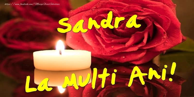 Această felicitare cu trandafir și lumânare aprinsă din colecția noastră de felicitari de ziua numelui cu numele Sandra are o notă de originalitate și îți oferă ocazia să faci o persoană să se simtă specială datorită faptului că acolo este numele ei. Felicitarea se poate descărca gratuit sau se poate trimite prin Whatsapp, Facebook, Twitter, Pinterest. Imagine de ziua onomastică cu trandafir și lumânare aprinsă cu dimensiunile 800px x 400px și cu textul Sandra La Multi Ani!.