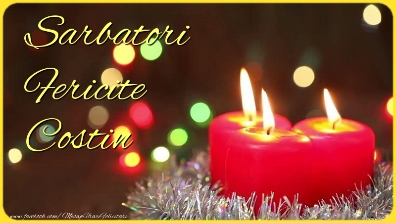 Această felicitare cu aranjament cu trei lumânari roții de sărbători din colecția noastră de felicitari de Craciun cu numele Costin are o notă de originalitate și îți oferă ocazia să faci o persoană să se simtă specială datorită faptului că acolo este numele ei. Felicitarea se poate descărca gratuit sau se poate trimite prin Whatsapp, Facebook, Twitter, Pinterest. Imagine de Sărbătoarea Crăciunului cu aranjament cu trei lumânari roții de sărbători cu dimensiunile 800px x 451px și cu textul Sarbatori Fericite Costin.