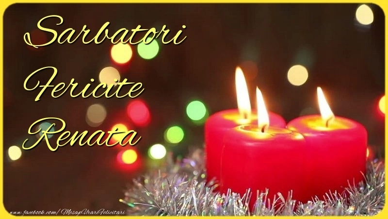 Această felicitare cu aranjament cu trei lumânari roții de sărbători din colecția noastră de felicitari de Craciun cu numele Renata are o notă de originalitate și îți oferă ocazia să faci o persoană să se simtă specială datorită faptului că acolo este numele ei. Felicitarea se poate descărca gratuit sau se poate trimite prin Whatsapp, Facebook, Twitter, Pinterest. Imagine de Sărbătoarea Crăciunului cu aranjament cu trei lumânari roții de sărbători cu dimensiunile 800px x 451px și cu textul Sarbatori Fericite Renata.